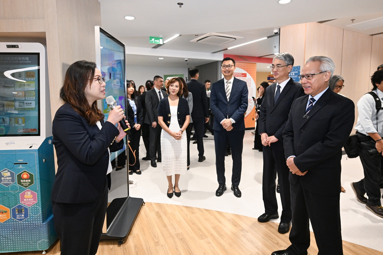 Ao mesmo tempo, o Centro de Serviços da RAEM dispõe do Centro de Serviços de Auto-Atendimento 24 horas do Governo, prestando mais de 60 serviços automáticos de diversos Serviços Públicos. Está instalada ainda uma “zona destinada aos serviços de auto-atendimento transfronteiriços”, onde estão disponíveis o quiosque automático de serviços públicos “Yuezhizhu”, da Província de Guangdong, e o quiosque automático de assuntos comerciais “Shangshitong”, de Hengqin, com o objectivo de facilitar aos residentes e empresas o tratamento de assuntos relativos a cuidados a idosos, emprego, fiscalidade, transporte, habitação, etc., num total de mais de 200 serviços frequentes.