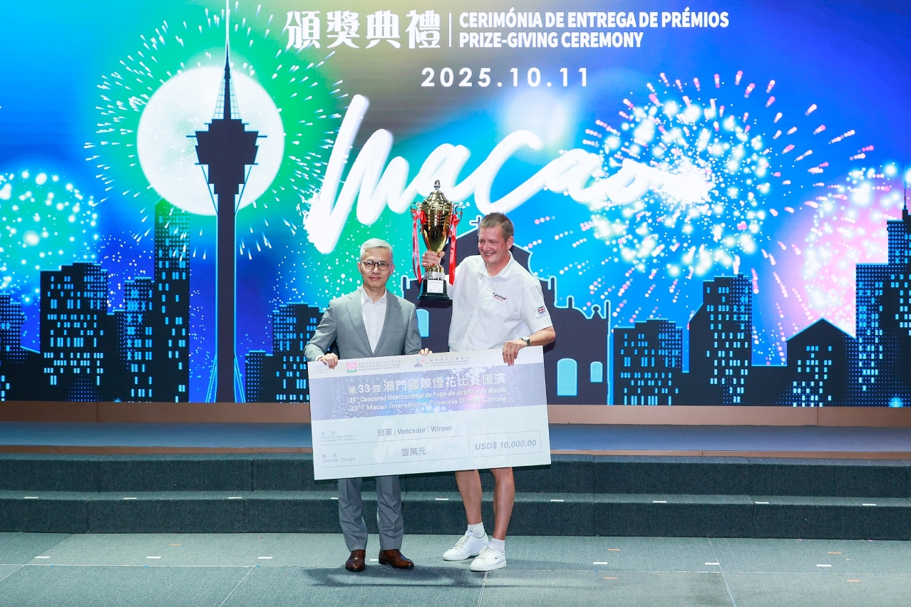 A cerimónia de entrega de prémios decorreu após as duas últimas exibições do evento, contando com a presença do Secretário para a Economia e Finanças, Tai Kin Ip, da directora da DST, Maria Helena de Senna Fernandes, entre outros convidados. Num discurso na ocasião, Maria Helena de Senna Fernandes, referiu que a DST procura descobrir companhias pirotécnicas de alto nível de todo mundo para competir em Macau. Assinalanando que apesar das condições meteorológicas terem afectado o evento deste ano, levando à alteração das duas exibições finais para esta noite, referiu que tal não impediu que as companhias oferecessem ao público cinco noites com dez espectáculos piromusicais deslumbrantes. Acrescentou que o evento permitiu também às companhias de fogo-de-artifício de várias partes do mundo aproveitar a participação na competição para aprofundar contactos e diálogo com parceiros da indústria de outros países, o que mostrou as vantagens de Macau como plataforma de intercâmbio internacional. Expressando ainda votos para que o CIFAM continue a mostrar a atracção da diversidade de propostas de “turismo + eventos” e a reforçar as ofertas de Macau como um centro mundial de turismo e lazer.