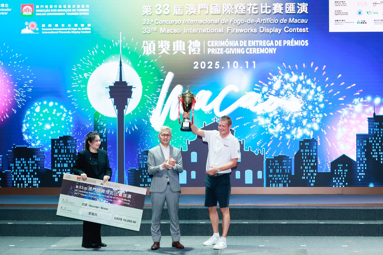 O 33.º Concurso Internacional de Fogo-de-Artifício de Macau (CIFAM), organizado pela Direcção dos Serviços de Turismo (DST), fechou o pano e realizou a cerimónia de entrega de prémios esta noite (dia 11). Dez companhias pirotécnicas de várias partes do mundo mostraram o seu talento em cinco noites de fogo-de-artifício decorridas entre Setembro e Outubro. Após forte competição, a companhia piroténica do Reino Unido, Pyrotex Fireworx ltd, conquistou o primeiro lugar, a das Filipinas, Platinum Fireworks, Inc., ficou em segundo lugar, e a da China, Dancing Fireworks Group, em terceiro.