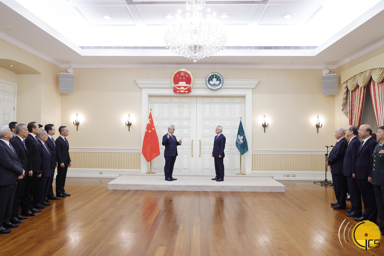 O Chefe do Executivo, Sam Hou Fai, presidiu, esta manhã (16 de Outubro), à cerimónia de juramento e tomada de posse do secretário para a Administração e Justiça, Wong Sio Chak, do secretário para a Segurança, Chan Tsz King, e do procurador do Ministério Público, Tong Hio Fong, na Sede do Governo.
