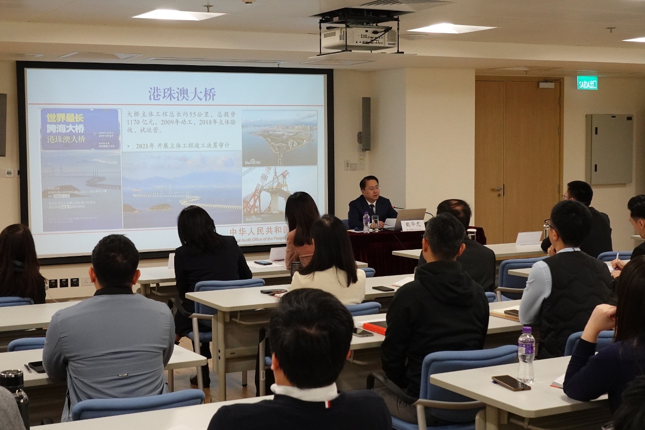 A delegação do GAN em visita a RAEM foi composta por vários membros, nomeadamente, o Chefe do Departamento de Investimento, Dai Huahu, o Vice-Chefe de Divisão do Departamento de Investimento, Gao Chong, a Vice-Chefe de Divisão do Departamento Financeiro, Li Meng, o investigador do Gabinete de Estudo das Políticas, Huo Yu, e o Chefe de Divisão do Gabinete para os Assuntos de Hong Kong, Macau e Taiwan do GAN, Yin Qiang. A palestra de intercâmbio decorreu em quatro sessões temáticas: “Acompanhamento das auditorias de grandes projectos de infra-estruturas”, “O desenvolvimento da participação do governo em fundos de private equity e as respectivas práticas de auditoria”, “Melhor aproveitamento do papel singular da fiscalização de auditoria para promover o desenvolvimento aprofundado de coordenação regional na nova era” e “Auditoria de conformidade legal”, e durante a qual foram apresentadas e partilhadas experiências teóricas e políticas integradas na prática.