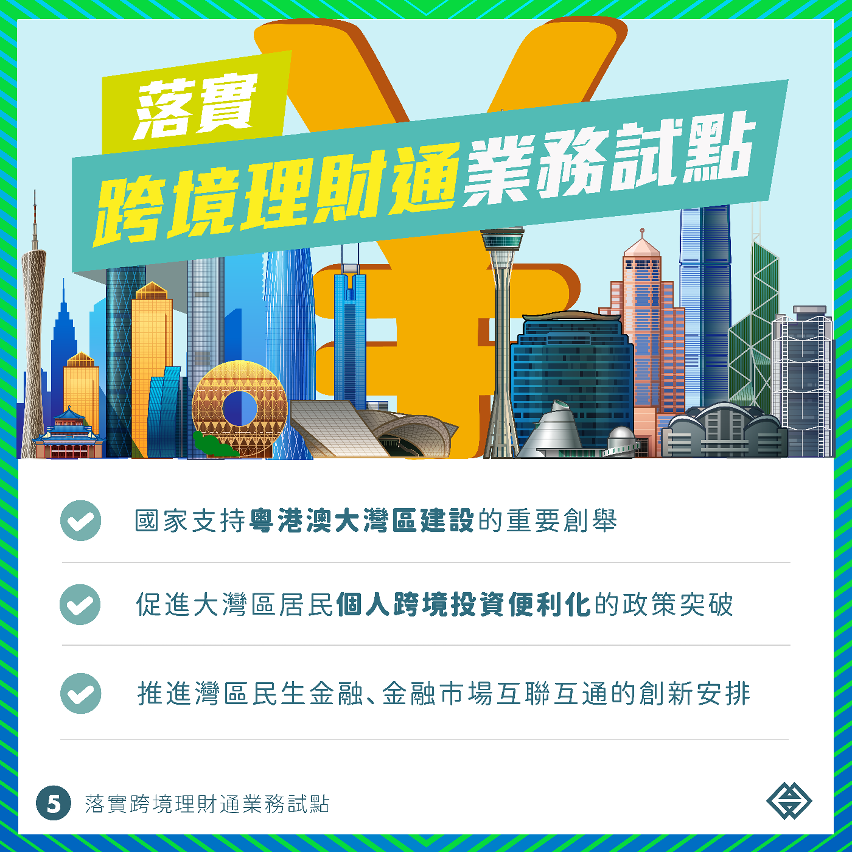 金管局表示,“跨境理财通”是在《粤港澳大湾区发展规划纲要》下,落实中央金融四部委《关于金融支持粤港澳大湾区建设的意见》,促进大湾区居民个人跨境投资便利化的一项政策突破,是推进湾区民生金融、金融市场互联互通的重要举措与创新安排。