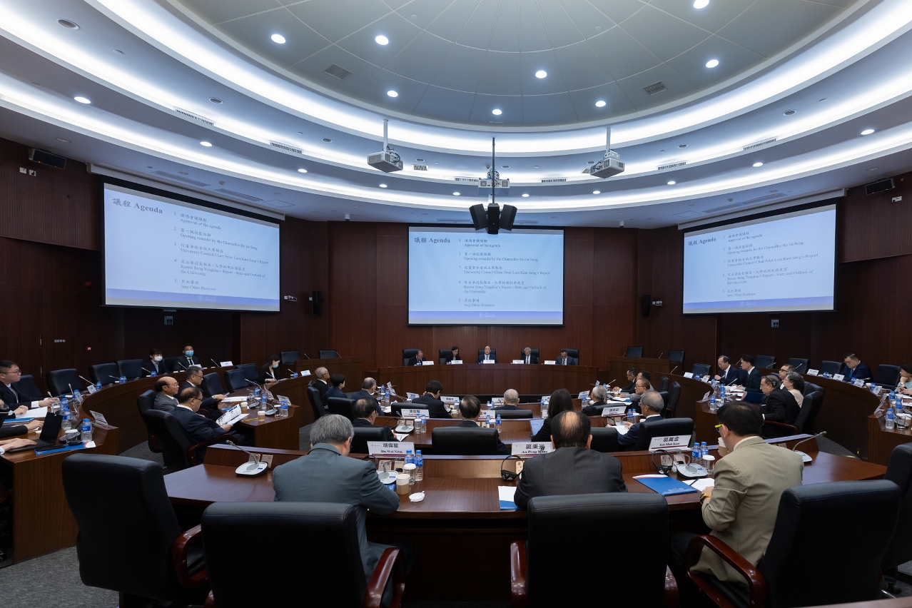 澳门大学2022/2023学年大学议庭及校董会联席会议在6月29日于澳大何贤会议厅举行,并由澳门特别行政区行政长官、澳大校监兼大学议庭主席贺一诚主持。他强调,要深入学习贯彻习近平主席最近对澳门高校和科技工作者重要回信的精神,务实推进科技创新和成果转化,培养更多爱国爱澳优秀人才。