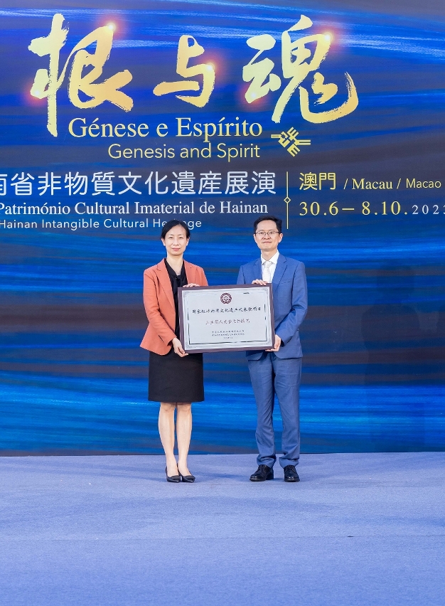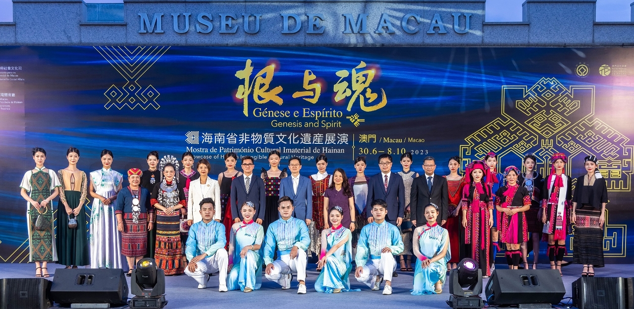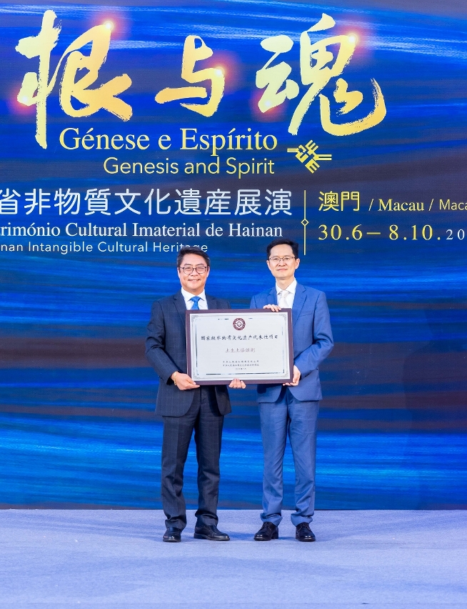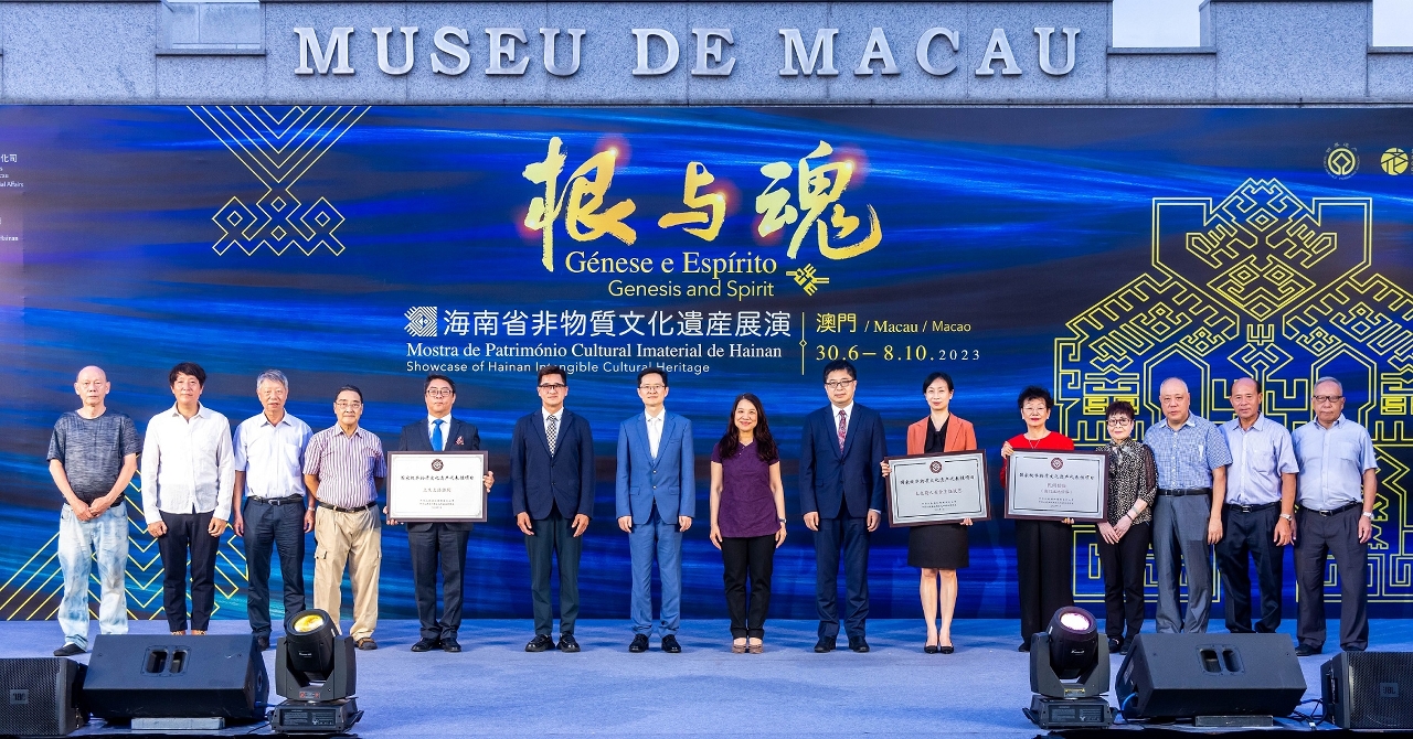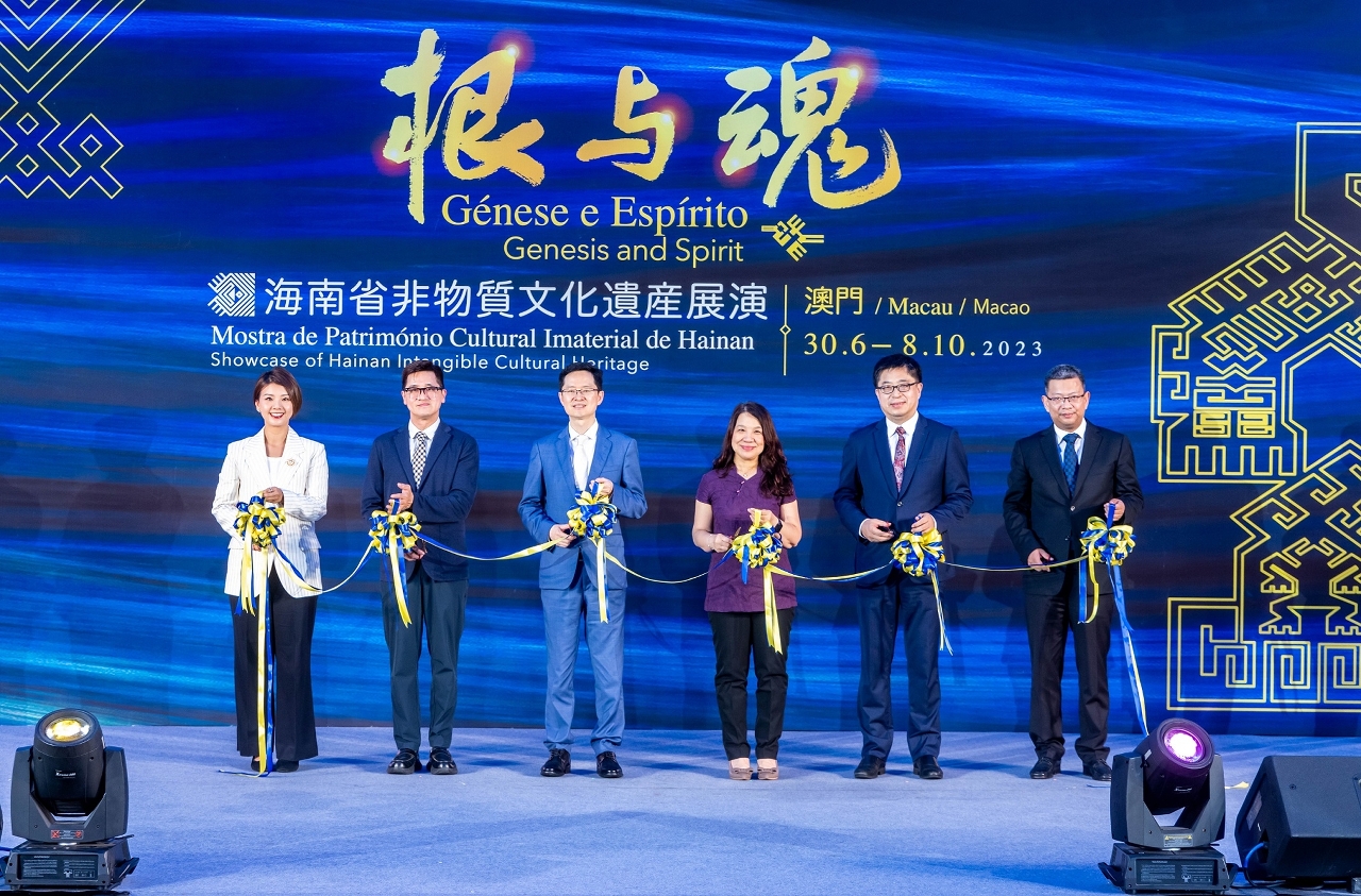 为庆祝2023年“中国文化和自然遗产日”,促进内地与澳门非物质文化遗产保护领域的交流和合作,让澳门市民更好地认识祖国深厚的文化底蕴及丰富的非物质文化遗产,由文化和旅游部与澳门特别行政区政府社会文化司主办、澳门特别行政区政府文化局与海南省旅游和文化广电体育厅承办、海南省非物质文化遗产保护中心协办、银河娱乐集团支持的“根与魂──海南省非物质文化遗产展演”于今日(6月30日)傍晚在大炮台花园举行开幕式。澳门特别行政区政府社会文化司司长代表、社会文化司司长办公室主任何钰珊、中华人民共和国文化和旅游部港澳台办公室副主任孔伦、中央人民政府驻澳门特别行政区联络办公室宣传文化部部长万速成、澳门特别行政区政府文化局局长代表、文化局副局长郑继明,海南省旅游和文化广电体育厅副厅长刘成及银河娱乐集团副总裁黄芝蓉出席主礼,来自海南省的嘉宾,以及澳门国家级非遗项目代表莅临参与,海南省的表演者向现场观众献上由琼剧、黎族竹木器乐、黎族民歌、海南苗族民歌、儋州调声、黎族打柴舞、黎族舂米舞、黎族共同舞及临高人偶戏,共9个海南国家级、省级非遗项目组成的海南传统表演艺术展演节目,现场气氛热烈。