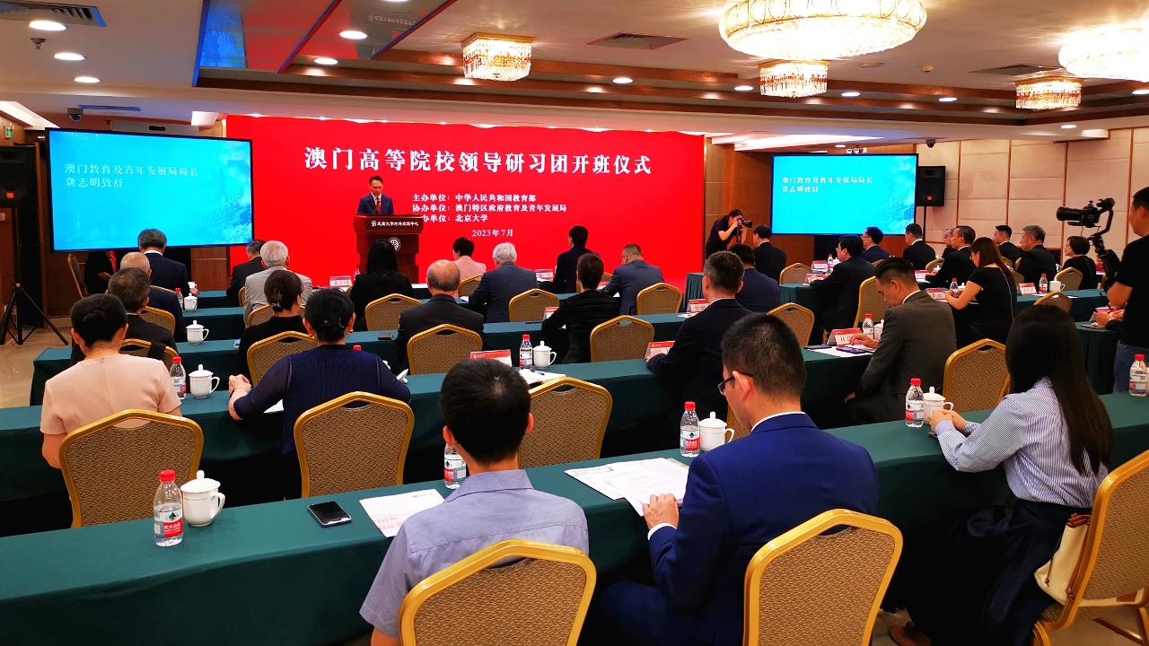 研习开班仪式于今天(17日)上午假北京大学英杰交流中心进行,由国家教育部副部长陈杰主持,北京大学校长龚旗煌、副校长王博,国家教育部国际合作与交流司司长刘锦、高等教育司副司长武世兴、高校学生司二级巡视员苟人民、学位管理与研究生教育司二级巡视员唐继卫、港澳台办副主任舒刚波,中央人民政府驻澳门特别行政区联络办公室教育与青年工作部部长李雪飞等参加。