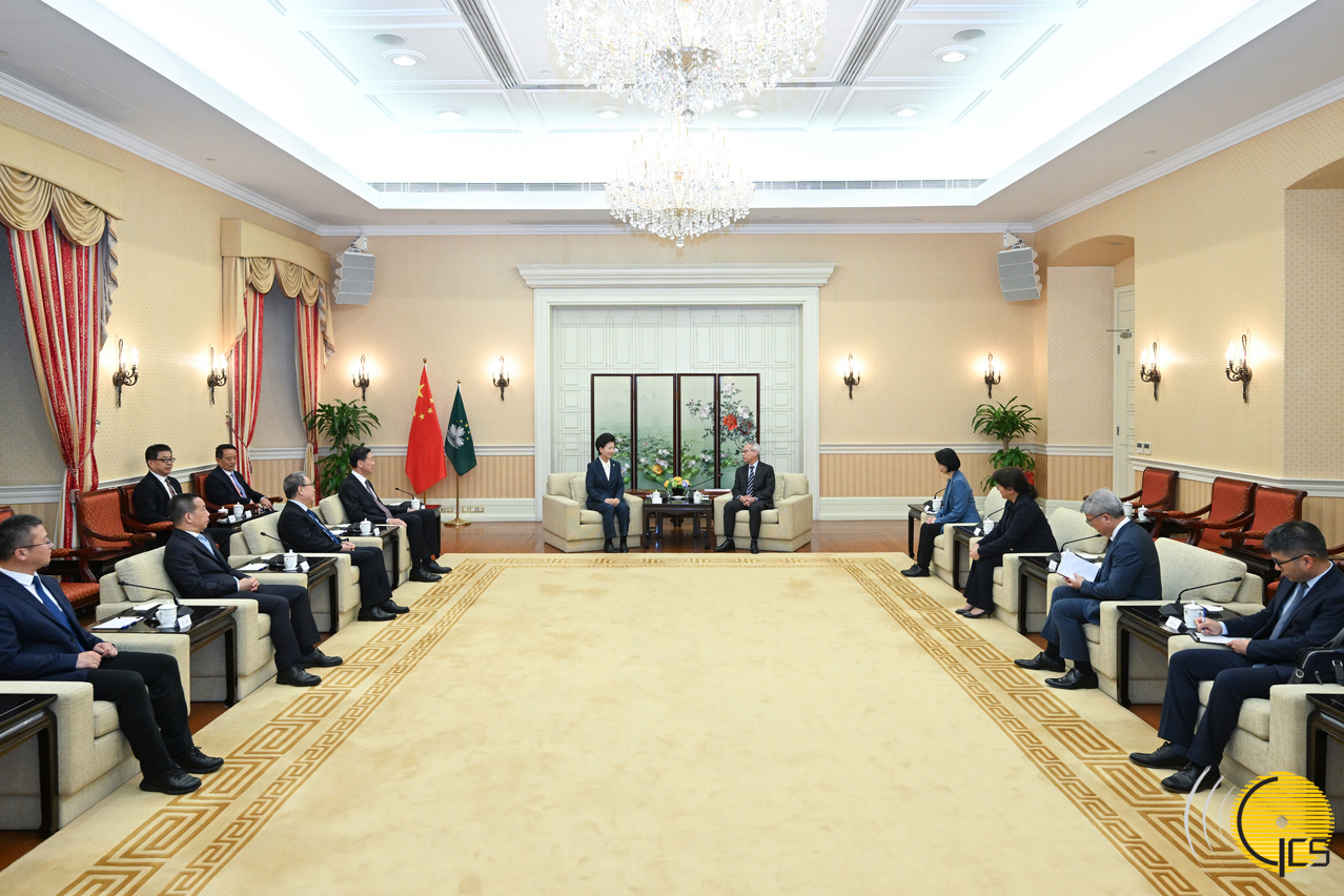 国务委员谌贻琴与行政长官岑浩辉今(12)日下午在政府总部会面,就全力办好第十五届全国运动会澳门赛区各项赛事,以及高质量推进粤港澳大湾区、横琴粤澳深度合作区建设等议题交流意见。