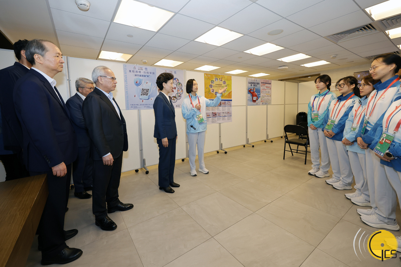 今日上午,谌贻琴国务委员抵澳后,在行政长官岑浩辉、中央政府驻澳门特区联络办公室主任郑新聪陪同下,视察了十五运会乒乓球项目的举办情况及竞赛设施,期间听取中国乒乓球协会主席王励勤介绍赛事概况。一行随后到场馆内的兴奋剂检查站视察,并探望在场工作的澳门赛区志愿者。