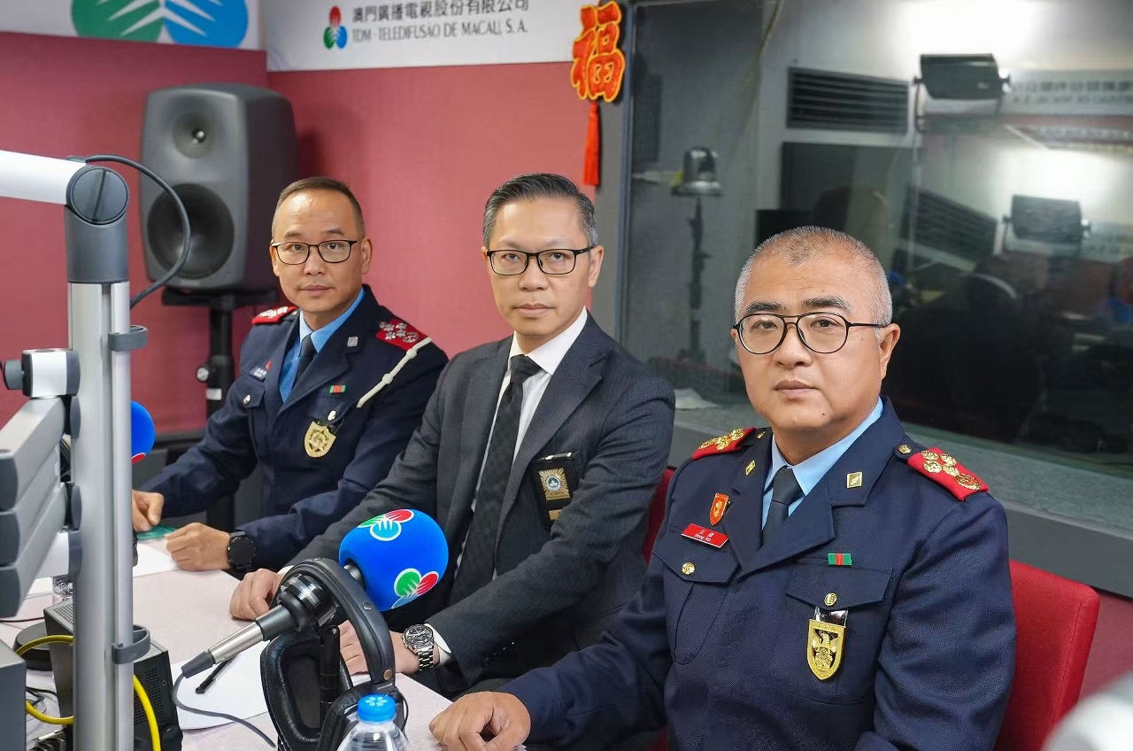 11月28日,司法警察局局长薛仲明、治安警察局局长吴锦华、消防局局长王健应邀出席澳门电台时事节目«澳门讲场»,与市民共同探讨打击犯罪、社会治安、防火及危险品的警务工作。