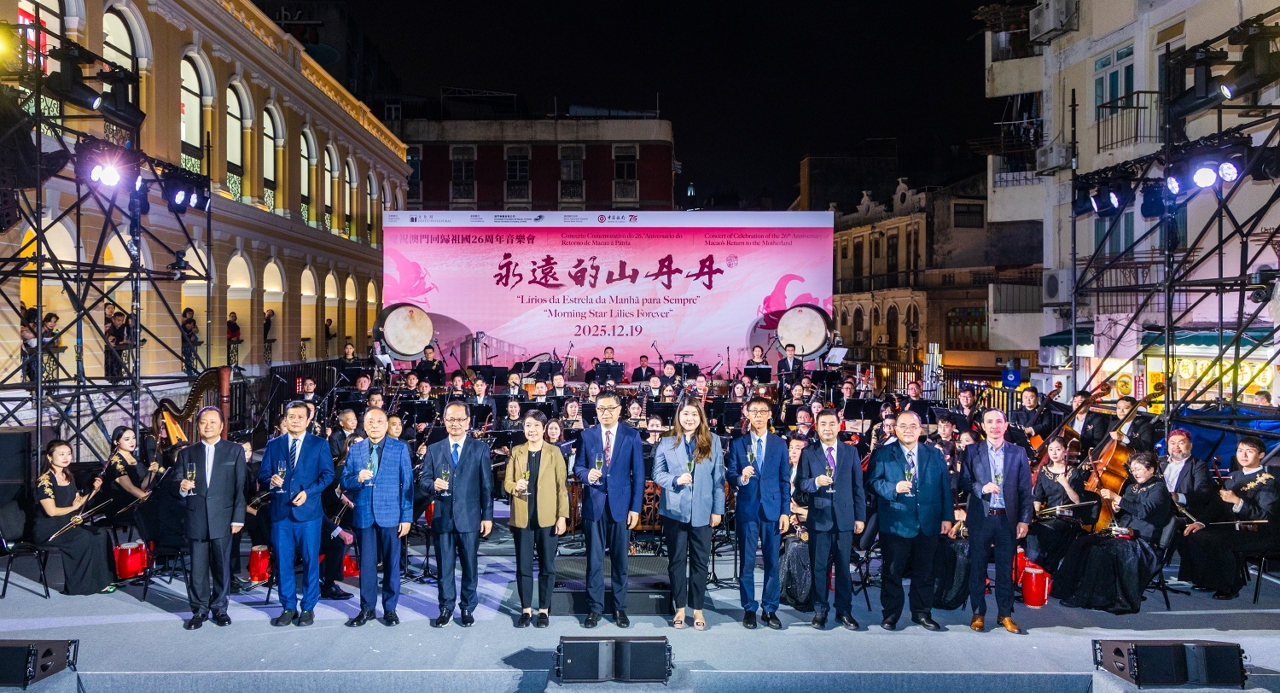 由文化局主办,澳门乐团有限公司承办的庆祝澳门回归祖国26周年音乐会《永远的山丹丹》于12月19日在澳门大三巴牌坊前地举行,同时举行2025年“东亚文化之都?中国澳门”活动年闭幕仪式,以气势恢宏的民族音乐盛典庆贺回归,并为活动年划上圆满句号。