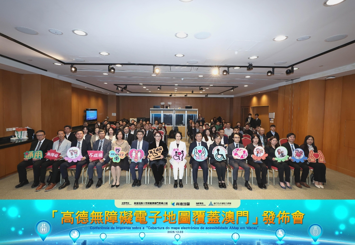 康复服务十年规划跨部门策导小组于12月3日在科学馆会议室举行「高德无障碍电子地图覆盖澳门」发布会。