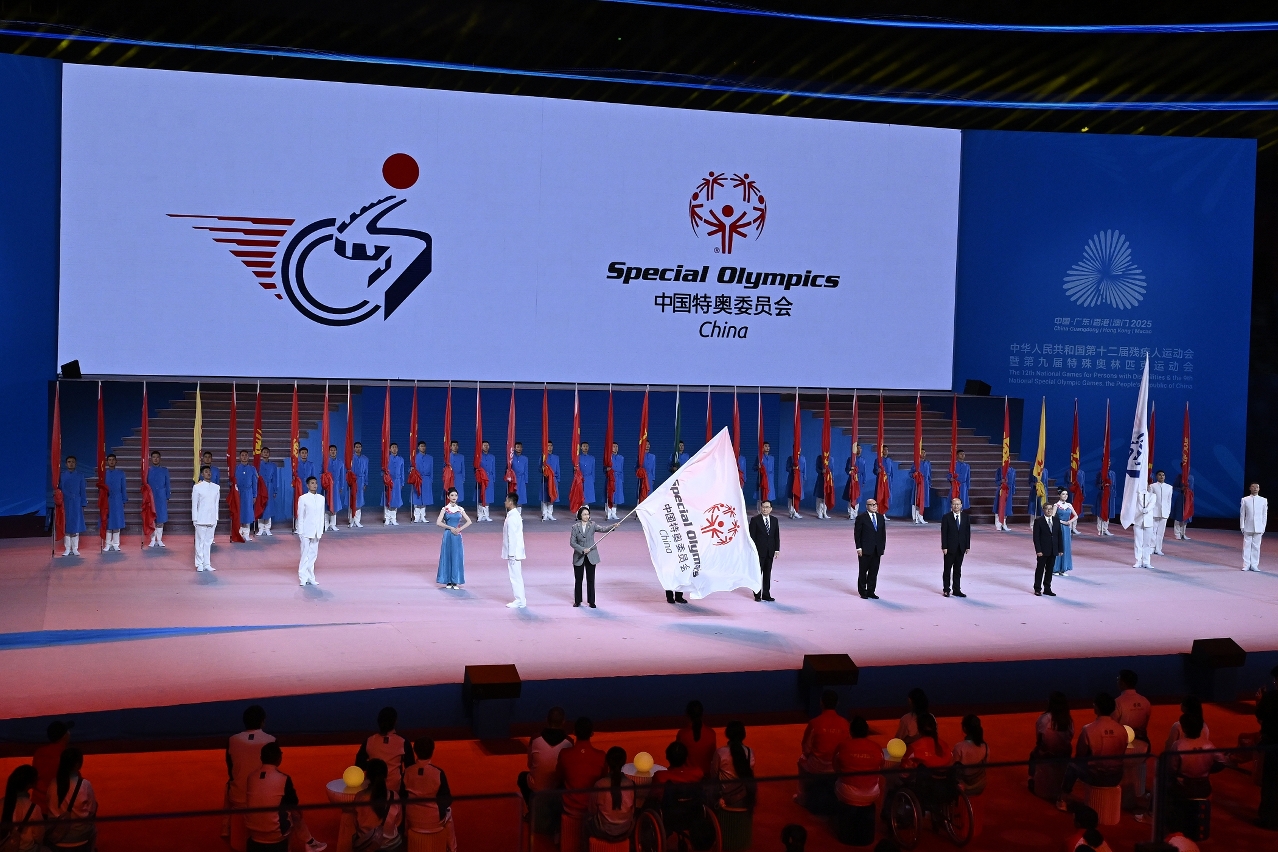闭幕活动上,柯岚、陈国基、广东省委常委王曦、国家体育总局副局长佟立新、中国残联理事长周长奎先后接过残运会、特奥会会旗,并移交给下一届残特奥会承办地代表、湖南省委常委王道席。下一届残特奥会将于2029年在湖南举行。