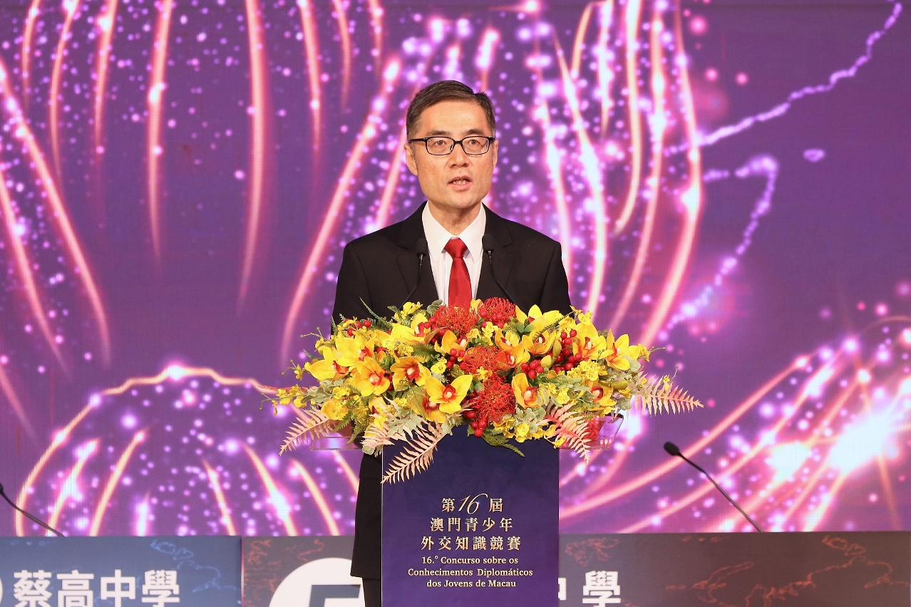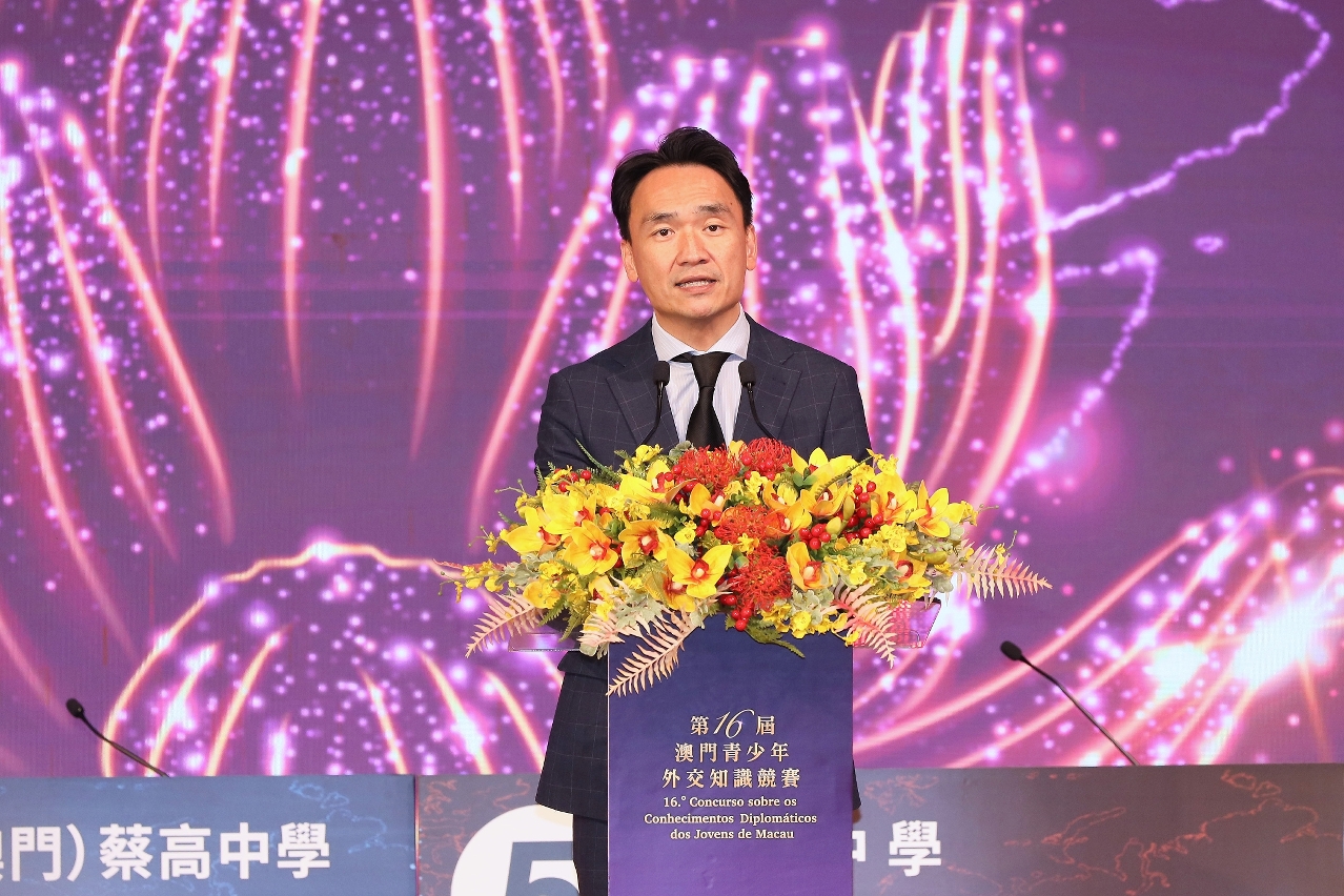 龚志明局长致辞时表示,习近平主席在纪念中国人民抗日战争暨世界反法西斯战争胜利80周年招待会上强调:“任何时候,我们都要坚持走和平发展道路,坚定守护世界和平安宁,携手构建人类命运共同体。”澳门作为“一国两制”成功实践的典范,积极融入国家发展大局,肩负讲好中国故事、传播澳门声音的使命。澳门青少年外交知识竞赛是特区政府与外交公署合作的品牌活动,激发澳门青年对国家外交事务的兴趣,展现对构建人类命运共同体的理解与担当。特区政府将持续深化与外交公署合作,举办系列推广外交知识的活动,支持青年立足澳门、胸怀祖国、放眼全球,运用所学在国际舞台上讲好中国故事、澳门故事。