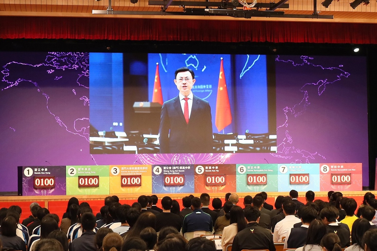 外交部发言人、外交部新闻司副司长郭嘉昆在视频致辞中表示,澳门青少年外交知识竞赛已连续举办了16届,成为了一项品牌活动。习近平主席视察澳门期间强调青年是澳门的希望和未来,是建设澳门和国家的有生力量。澳门青年要心系澳门,心系国家,展现志存高远脚踏实地的良好风貌。当今世界进入百年未有之大变局,十五五规划建议擘画了未来五年国家经济社会发展宏伟蓝图。希望澳门青年珍惜时代机遇,树立远大志向,当好“一国两制”事业的建设者和接班人,为澳门更好融入祖国发展贡献青春和力量。
