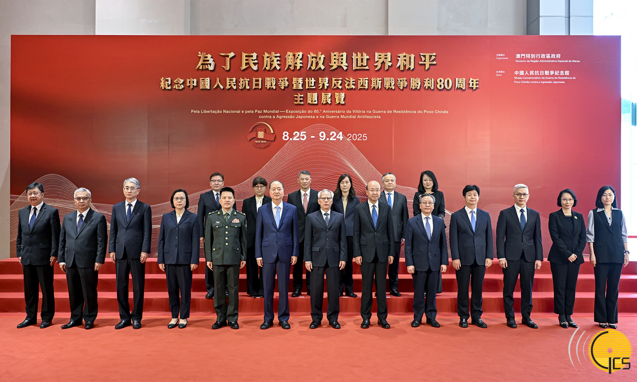 澳门特别行政区政府主办、中国人民抗日战争纪念馆支持举办的“为了民族解放与世界和平 — 纪念中国人民抗日战争暨世界反法西斯战争胜利80周年”主题展览,今(25)日上午在中国与葡语国家商贸合作服务平台综合体揭幕。行政长官岑浩辉在开幕式上致辞表示,面对百年未有之大变局,我们更需以抗战精神为指引,坚定爱国爱澳信念;透过持续举办系列纪念活动,激励全社会铭记历史、薪火相传、团结奋进,共同谱写澳门“一国两制”实践的新篇章,为民族复兴作出新贡献。