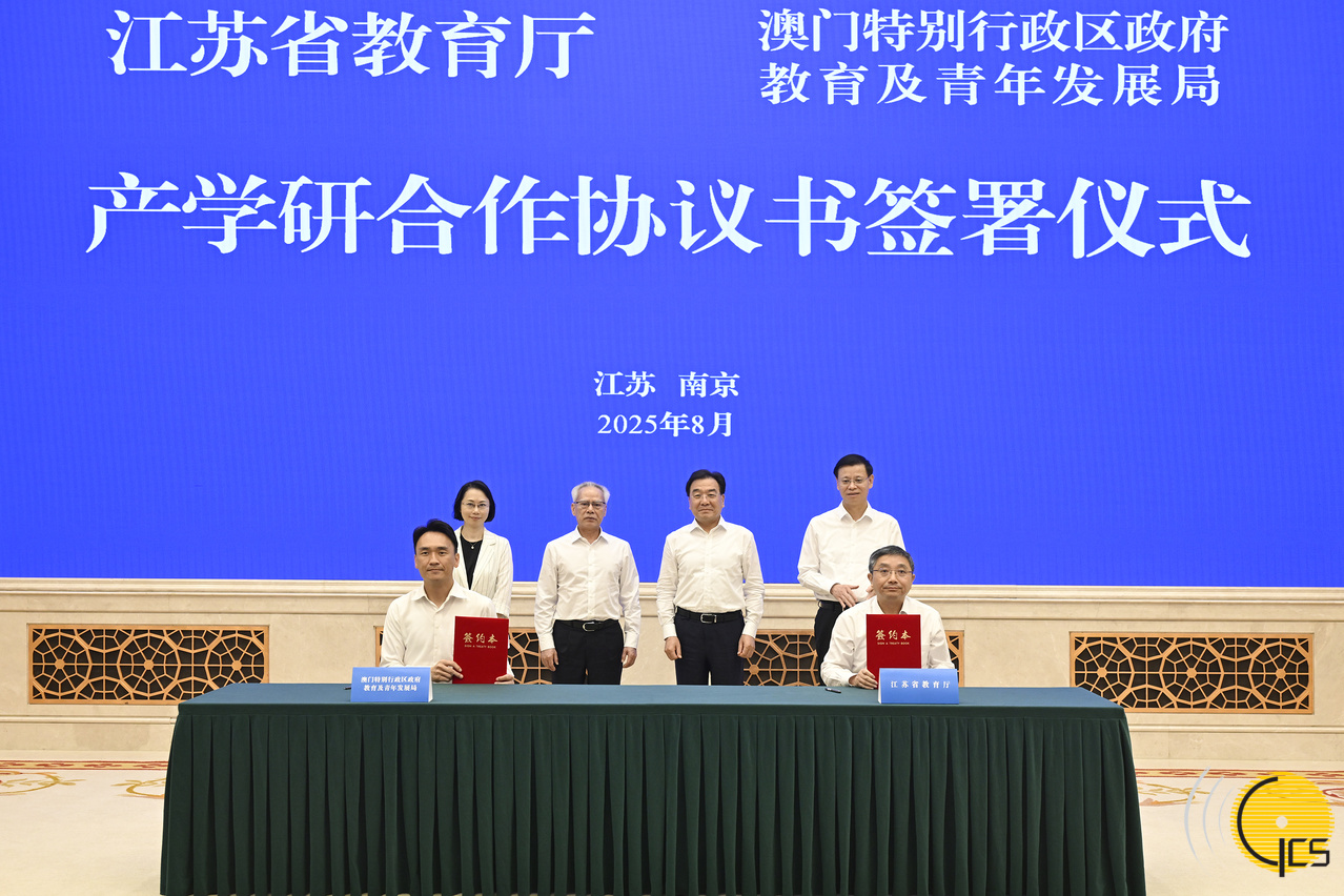 岑浩辉与信长星在会面后共同见证了《江苏省教育厅与澳门特别行政区政府教育及青年发展局推动产学研合作协议书》的签署仪式。通过合作协议,促进苏澳两地教育领域的交流合作,双方在已有的工作基础上进一步深化“教育 - 科技 - 人才”一体化发展,以发挥双方在教育资源、成果转化、服务平台等领域的互补优势。