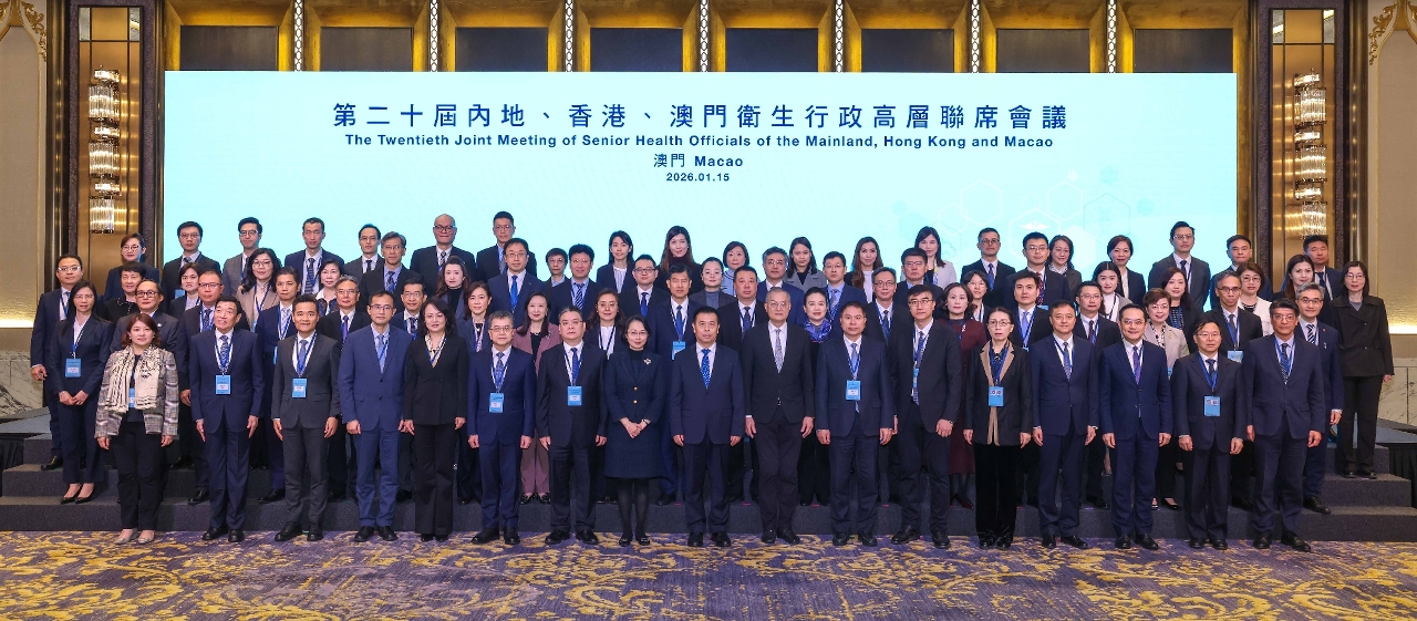 “第20届内地、香港、澳门卫生行政高层联席会议”于昨(15)日在澳门顺利举行。国家卫生健康委员会主任雷海潮、香港特别行政区政府医务卫生局局长卢宠茂,以及澳门特别行政区政府社会文化司司长柯岚分别率领内地、香港及澳门的代表团出席参会;此外,中央港澳工作办公室、国务院港澳事务办公室五局局长赵旭东、中央人民政府驻澳门特别行政区联络办公室副秘书长兼社会发展部部长黄华盖、广东省卫生健康委员会代表亦参会;而协和澳门医学中心、镜湖医院及科大医院的代表则是首次参会,进一步拓展会议的参与度。本届会议汇聚三地70多名卫生行政高层及医疗专家,围绕“医防管交叉复合型战略人才培养”、“推动关口前移共建健康社区”和“智慧医疗在卫生健康领域应用”等议题,展开深入交流、分享经验及探讨未来合作方向。