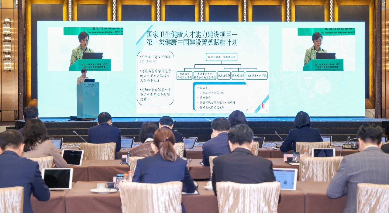 在会议上,雷海潮主任致辞时回顾“十四五”时期内地卫生健康工作成效,围绕服务融通、人才融通、科技创新等方面介绍2025年三地卫生健康交流合作情况。他表示,中国共产党二十届四中全会为下一个五年发展规划谋篇布局。全会作出加快建设健康中国、促进人口高质量发展等重要决策部署,对促进香港特别行政区、澳门特别行政区长期繁荣稳定作出重要安排。对于2026年三地卫生健康工作,国家卫生健康委将落实中央要求,全力支持港澳发展,继续密切交流,加强政策和项目支持。希望港澳特区深刻把握国家发展战略,发挥独特优势,继续参与内地重点领域工作,包括补强专业专科和基层短板弱项、康复护理扩容提升工程、为民服务十件实事等。积极支持粤港澳协同发力,进一步建设“健康湾区”。希望港澳发挥背靠祖国、联通世界的独特优势,助力卫生健康领域高水平对外开放。