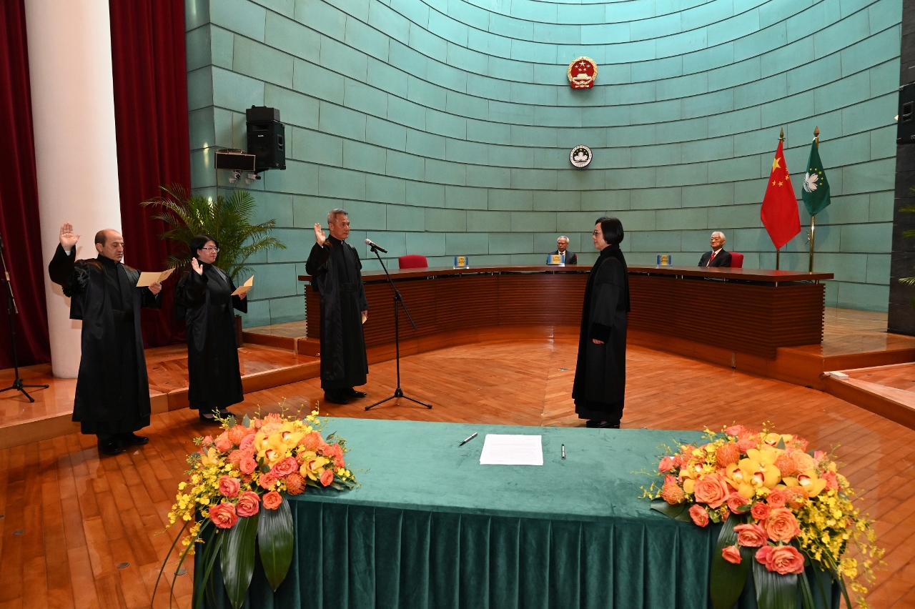 2026年1月5日中午12时正,于终审及中级法院大楼审判庭举行就职仪式。上述六名法官在终审法院院长宋敏莉主持及监誓下宣誓就职,行政长官岑浩辉和推荐法官的独立委员会主席刘焯华列席主礼台。行政法务司司长、保安司司长、检察院检察长、廉政专员、推荐法官的独立委员会委员、法官委员会委员、检察官委员会委员、律师公会理事会主席、各级法院法官及检察官、相关部门领导等嘉宾以及法院众多职员出席就职仪式,共同见证六名法官就任新职。