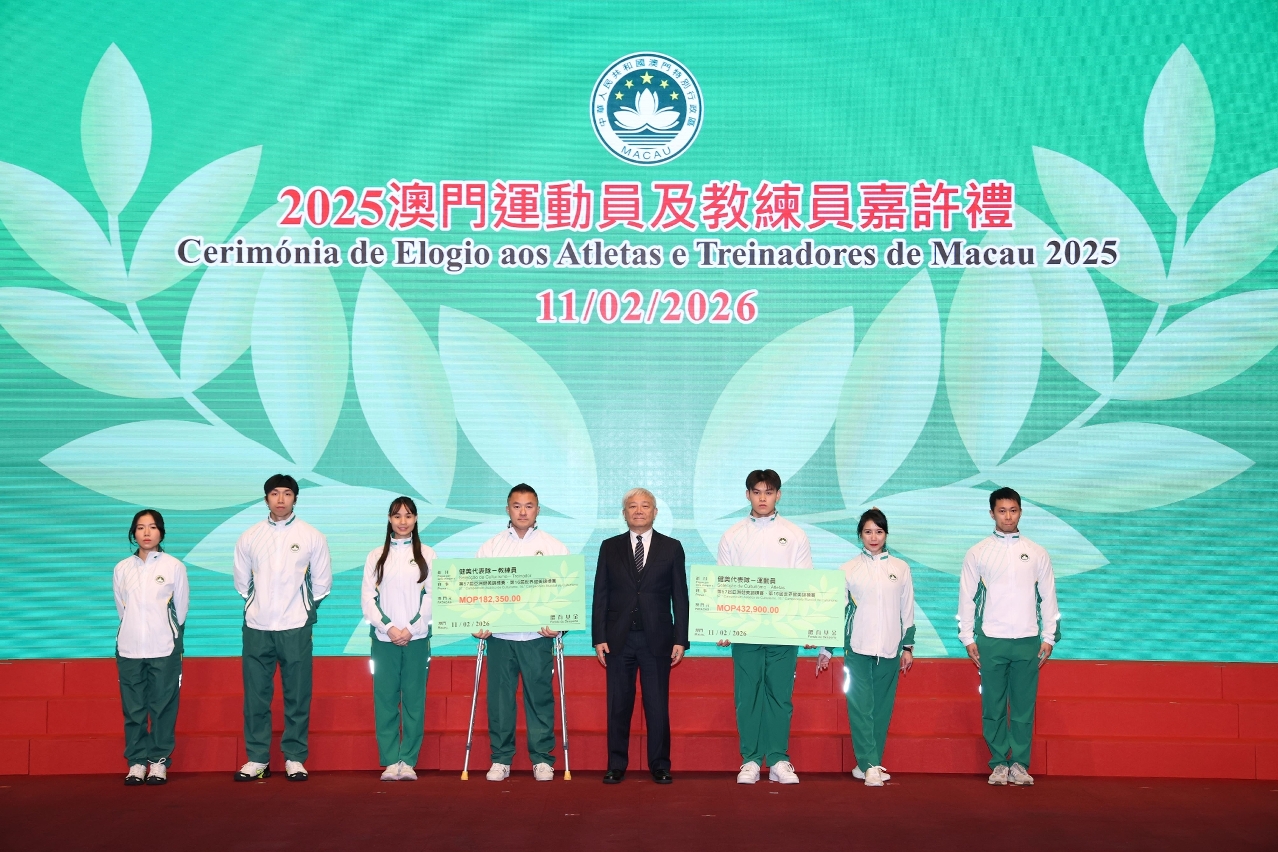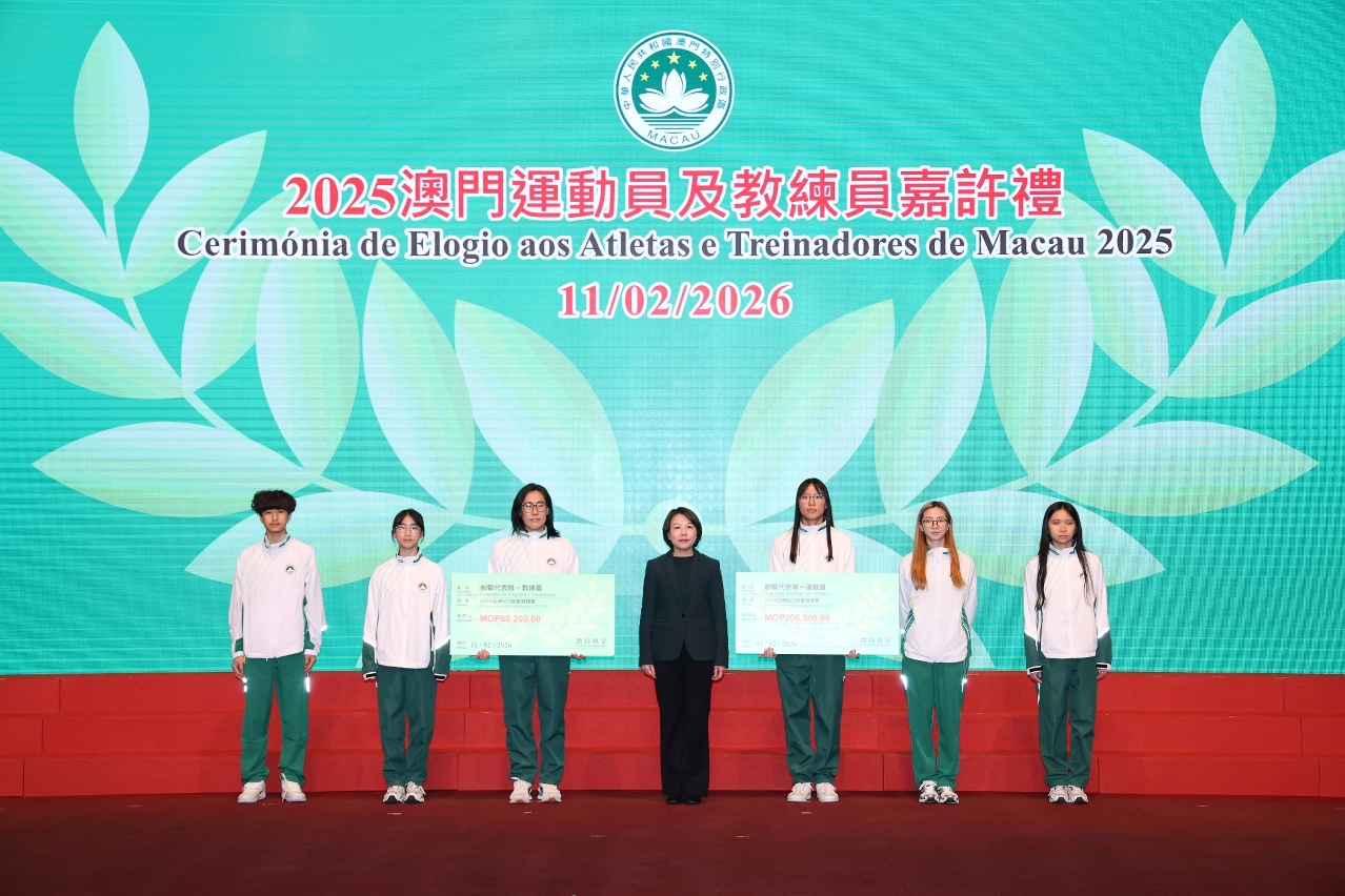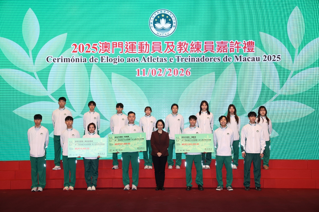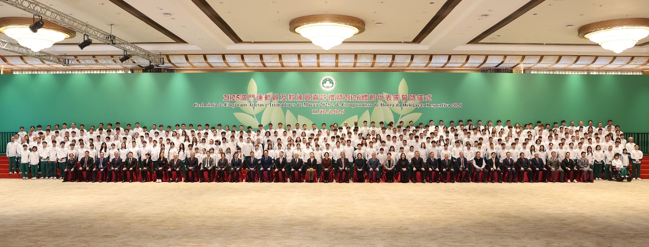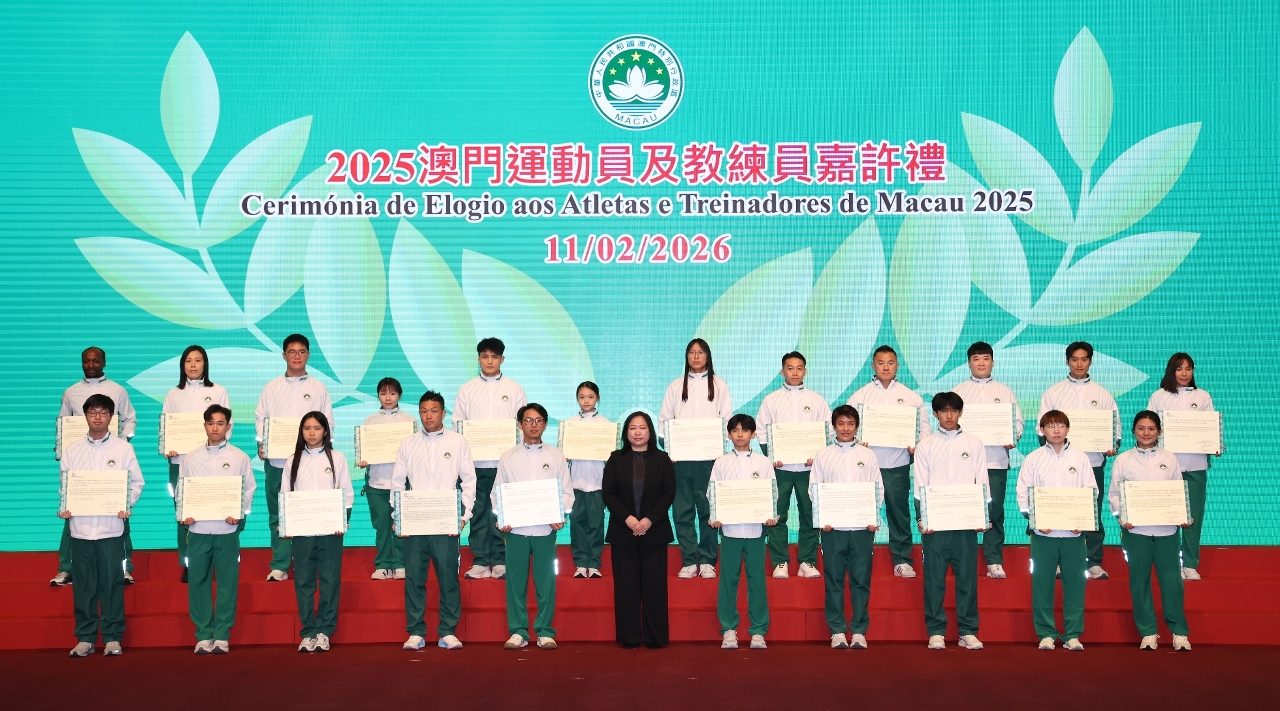 为表彰在2025年度参加体育比赛中获得优秀成绩的本澳运动员、教练员及技术辅助人员,以及为鼓励澳门体育代表团在今年各项大型体育赛事中创造佳绩,「2025澳门运动员及教练员嘉许礼暨2026体育代表团誓师仪式」昨(11)日晚上七时半举行,社会文化司司长柯岚等出席仪式,勉励并祝贺一众运动健儿。