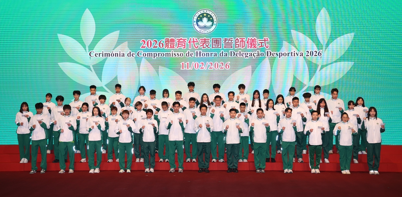 澳门体育代表团于2026年将参加包括「第二十届亚洲运动会」、「第五届亚洲残疾人运动会」、「第六届亚洲沙滩运动会」,以及「第六届亚洲室内及武道运动会」等的大型综合性运动会。于誓师仪式上,在柯岚司长及各嘉宾见证下,运动员代表宣言承诺必定全力以赴,迎接今年各项运动会及赛事,为澳门争光。