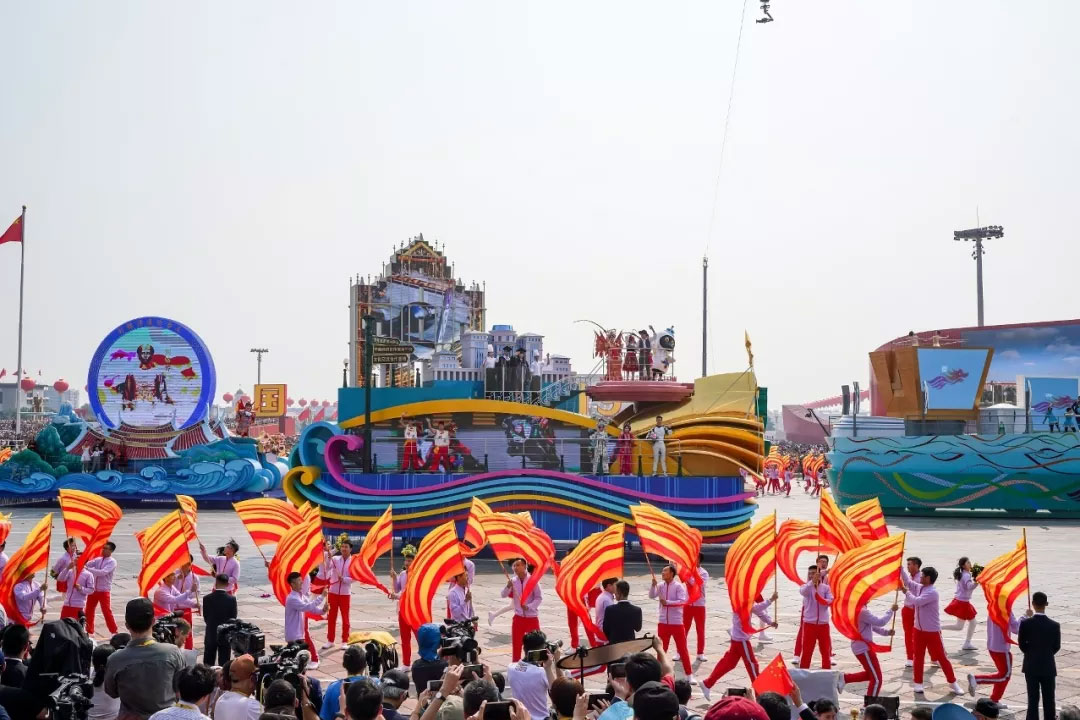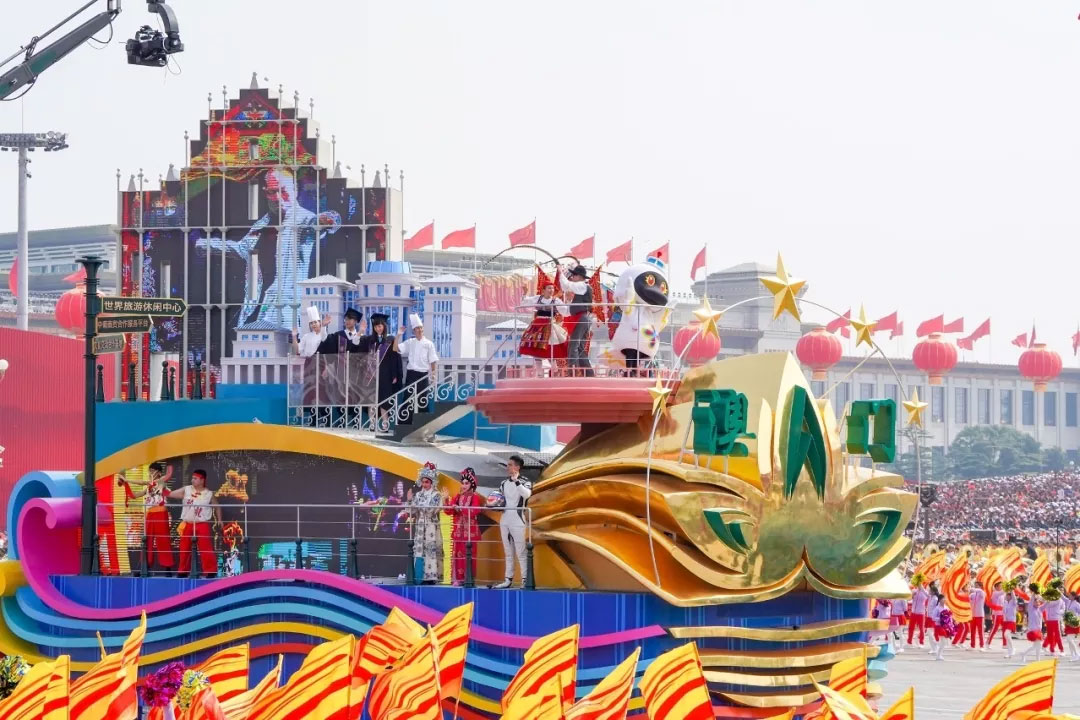 當日,澳門旅遊吉祥物麥麥與多個領域的澳門人士彙聚在彩車上,表現多元文化共融共處,包括:賽車運動領域、高等教育領域、廚師領域、澳門非物質文化遺產領域、澳門土生文化領域和節慶領域等,一同向現場和觀看直播的觀眾送上來自澳門的祝福,共同分享國慶喜悅,展現出澳門的熱情和魄力。