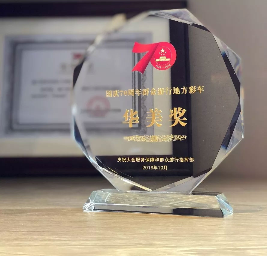 慶祝大會服務保障和群眾遊行指揮部組織專家隊伍,對34輛國慶當日參與群眾遊行環節的地方彩車進行獎項評選,分別從彩車創意構思、製作技術、藝術效果等方面,不分排名等次設置“匠心獎”、“華美獎”和“創新獎”三個獎項,澳門主題彩車榮獲“華美獎”。