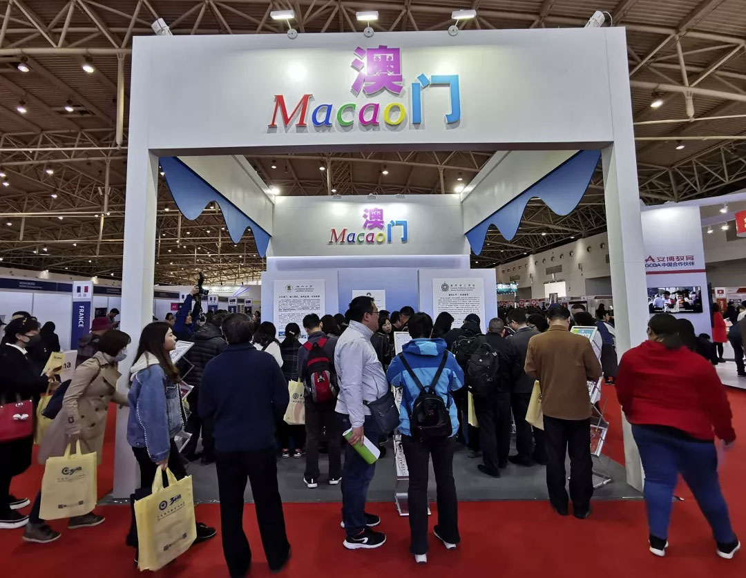 眾多參觀者前來澳門高校展位瞭解升學資訊