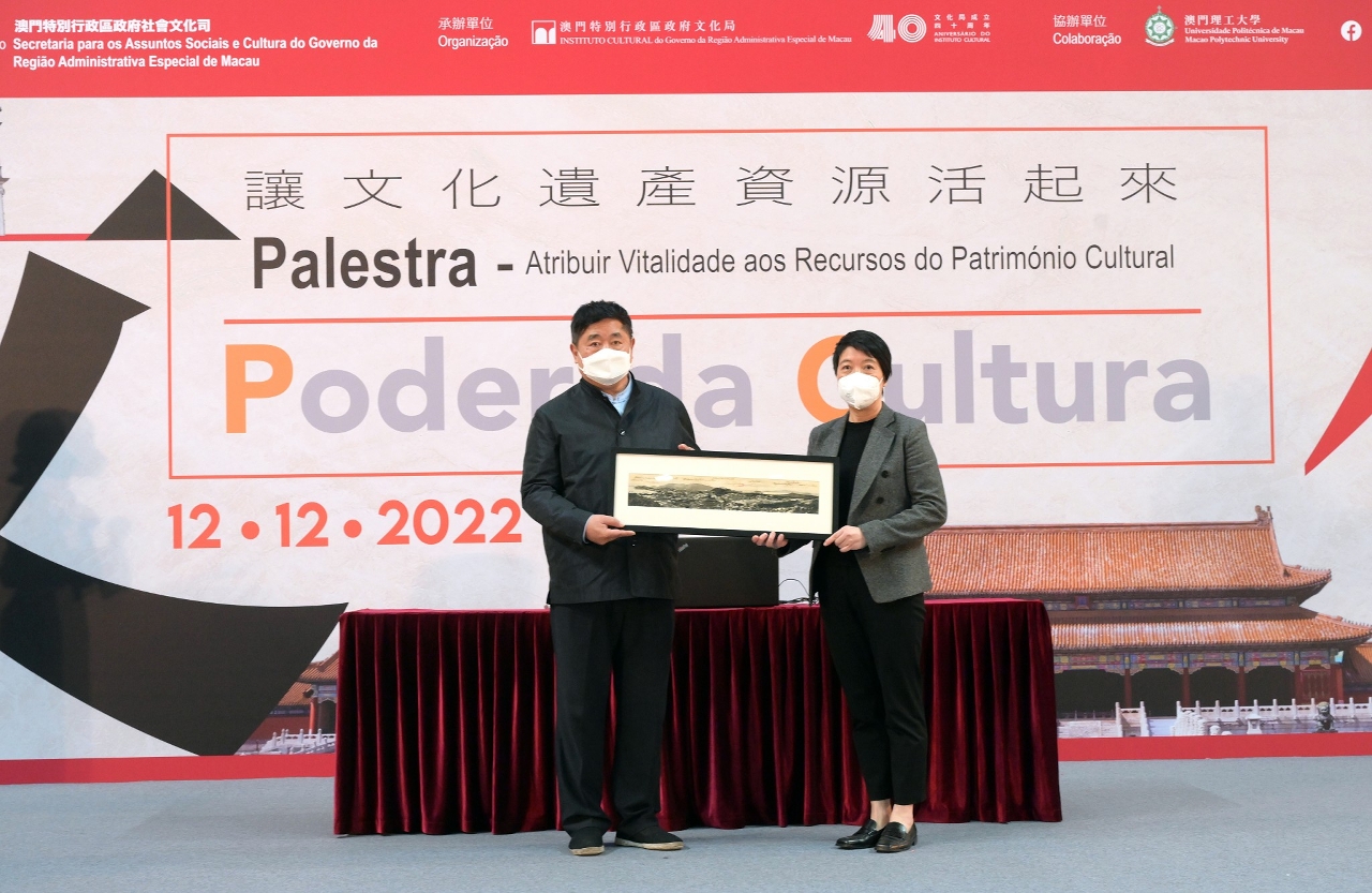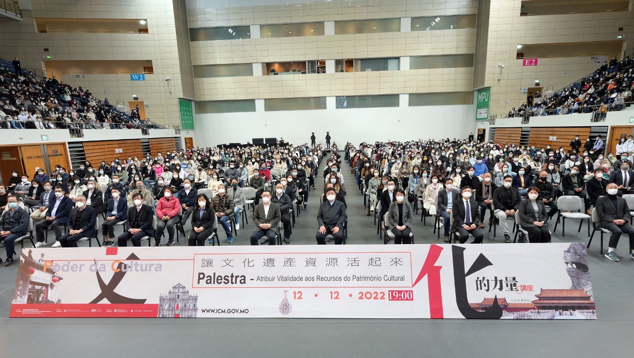 由澳門特別行政區政府社會文化司主辦、文化局承辦、澳門理工大學協辦的“文化的力量——讓文化遺產資源活起來”講座,今日(12月12日)在澳門理工大學體育館舉行,講座由故宮博物院原院長單霽翔博士講解故宮文物及其與現實生活的聯繫,探討以創新形式把文化遺產資源融入生活,資料珍貴豐富,講解活潑生動,深獲聽眾好評,講座為本澳文化遺產的保護與傳承、與文化創意的融合與利用帶來啟發。