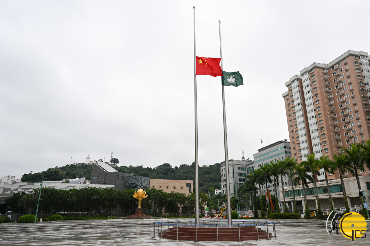 為悼念前國家主席江澤民先生,澳門特別行政區在金蓮花廣場下半旗誌哀。