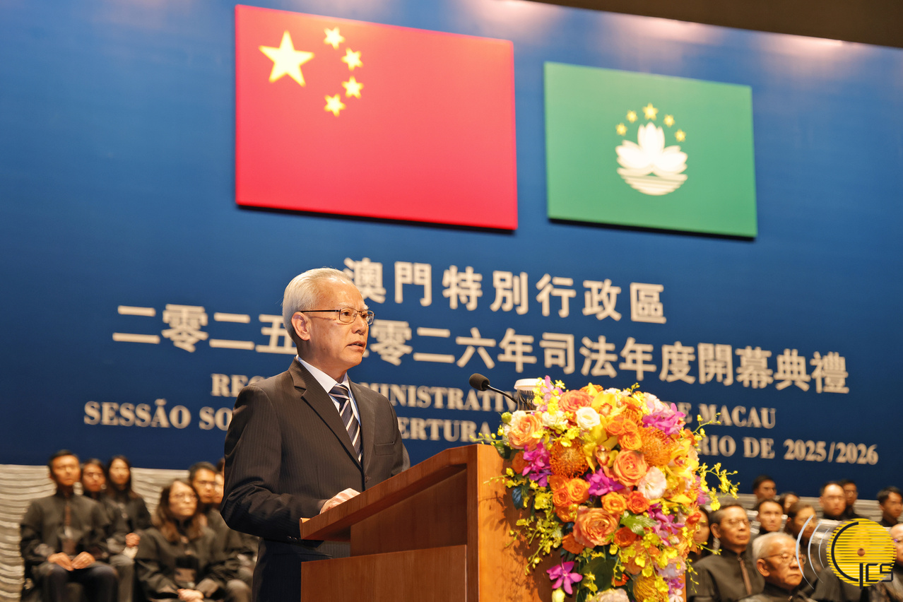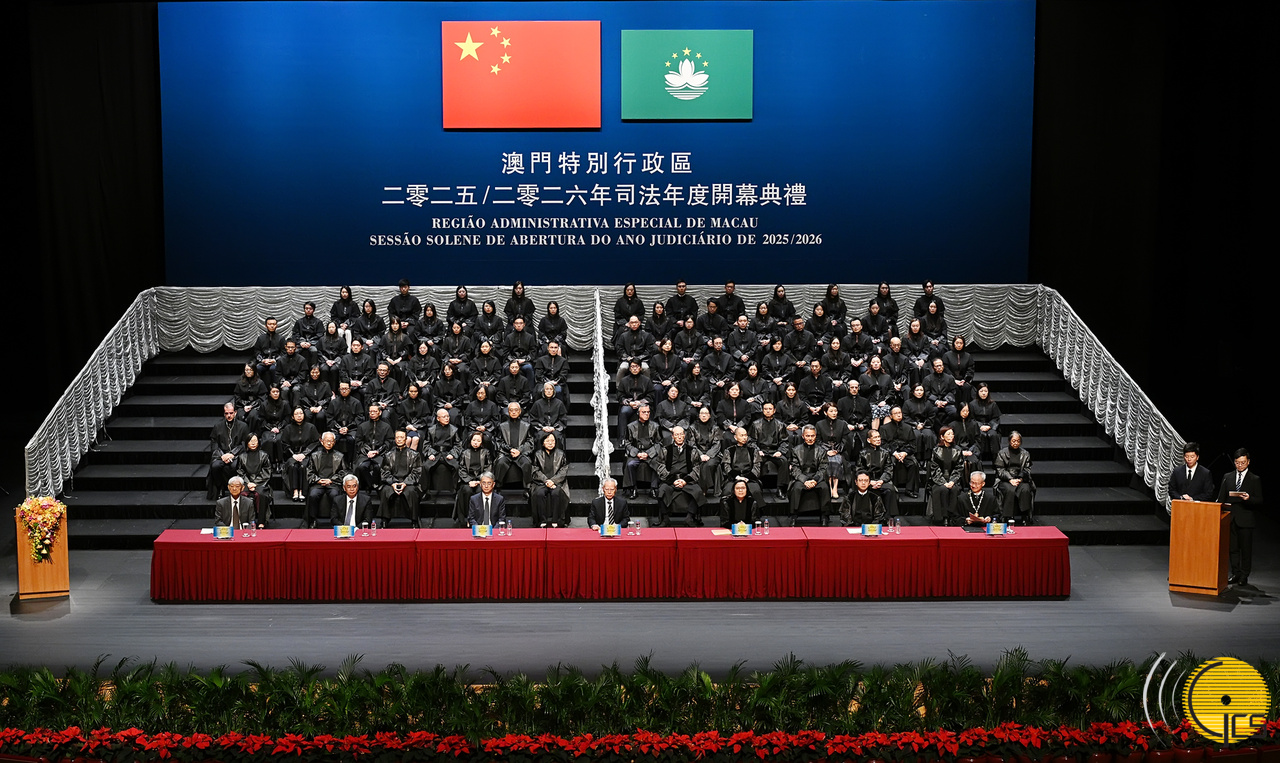 澳門特別行政區2025/2026年司法年度開幕典禮下午在文化中心舉行,由行政長官岑浩輝、立法會主席張永春、終審法院院長宋敏莉、行政法務司司長黃少澤、檢察院檢察長唐曉峰、推薦法官的獨立委員會主席劉焯華、澳門律師公會理事會主席黃顯輝主禮。來澳出席第十三屆葡萄牙語國家和地區最高法院院長論壇的葡萄牙語國家和地區最高法院院長及代表也出席了開幕典禮。
