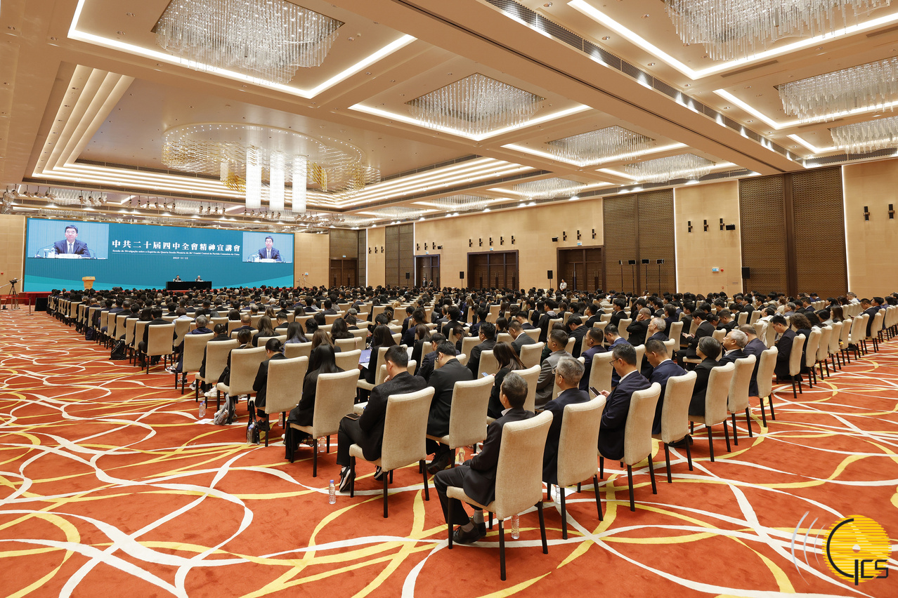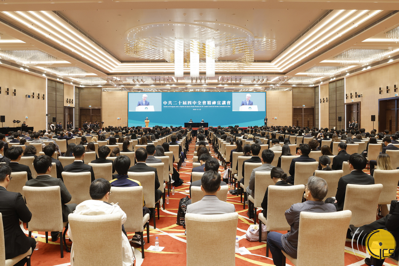 澳門特區政府今(22)日下午舉辦第二場“中共二十屆四中全會精神宣講會”,中央宣講團成員,中國科學院院長、黨組書記侯建國和中央宣講團成員,中央財經委員會辦公室副主任、中央農村工作領導小組辦公室副主任祝衛東,向本澳社會各界人士代表宣講全會精神。