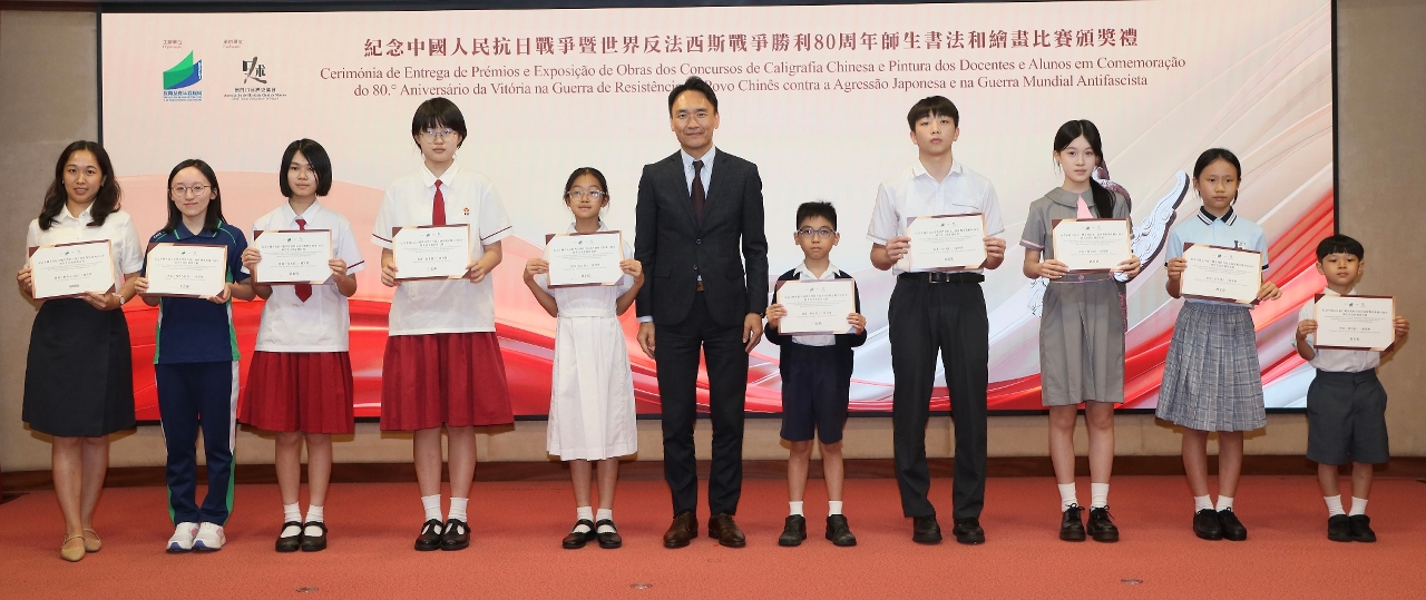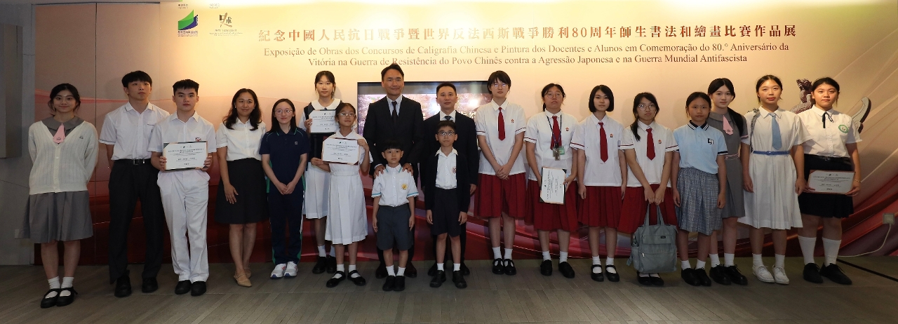 為紀念中國人民抗日戰爭暨世界反法西斯戰爭勝利80周年,教育及青年發展局舉辦“紀念中國人民抗日戰爭暨世界反法西斯戰爭勝利80周年”師生書法和繪畫比賽,並於8月28日舉行比賽的頒獎禮及作品展。