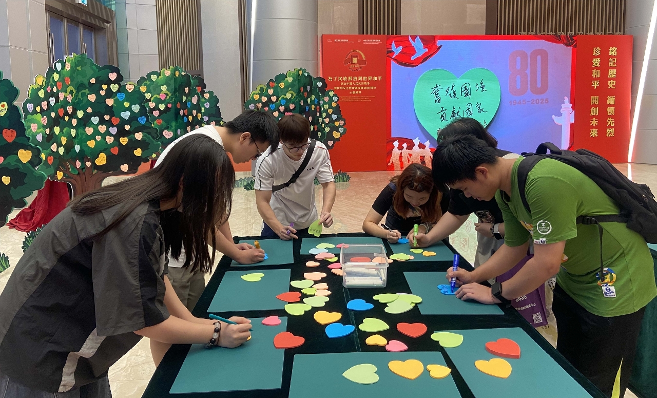 教青局將積極推動高等院校和非高等教育學校組織師生,以及組織親子參觀主題展覽,引導學生認識抗戰歷史,並通過展區的願望樹表達觀展後的感悟和對祖國的祝願,增強對祖國的認同感、歸屬感與民族自豪感,培養珍愛和平、維護和平的意識,厚植家國情懷,為國家的發展貢獻自己的力量。