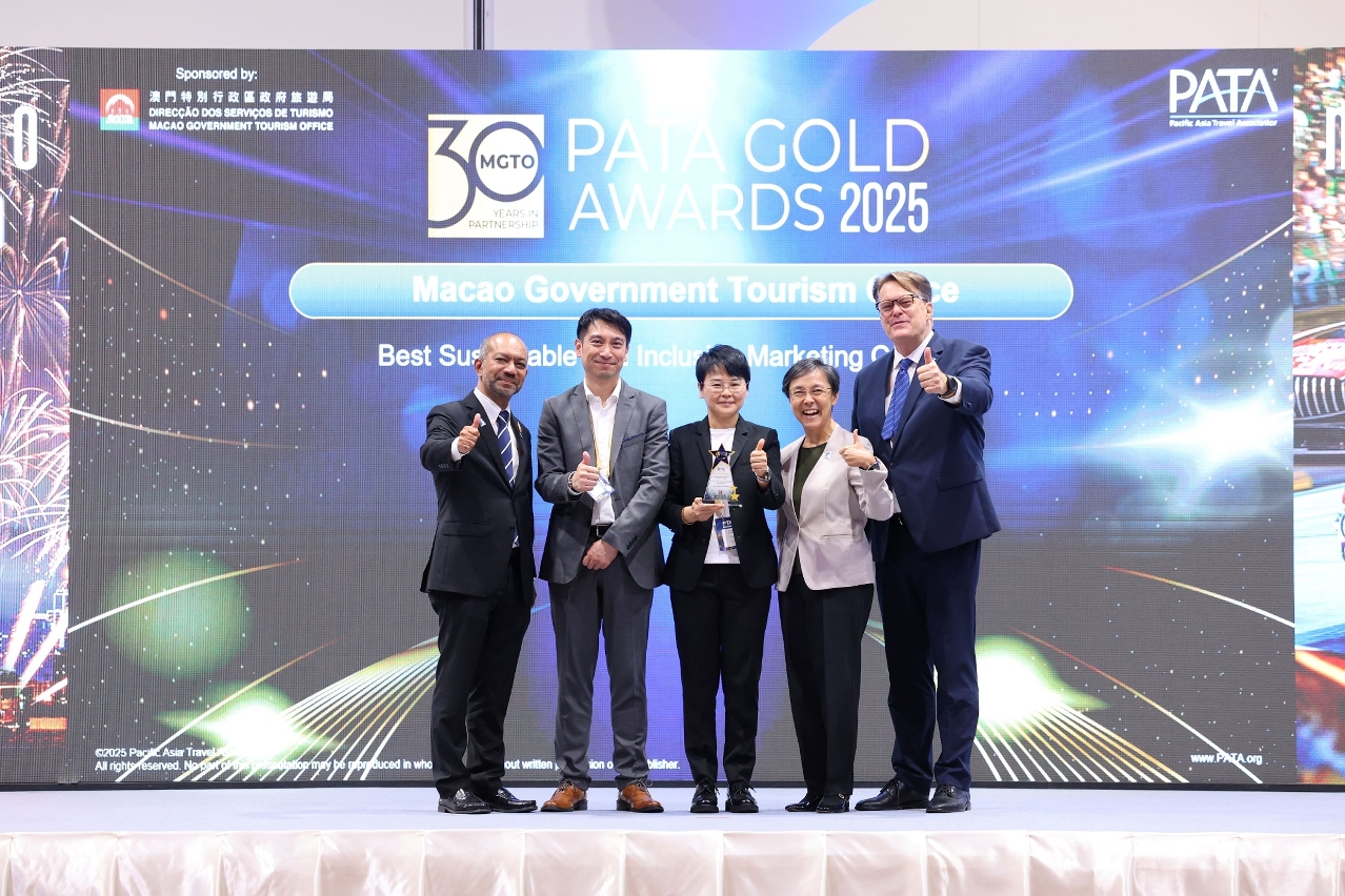 交易會亮點活動之一的2025年亞太旅遊協會金獎頒獎禮於27日晚上舉行。旅遊局與六家綜合度假休閒企業合辦的“感受澳門 專屬體驗”宣傳項目奪得亞太旅遊協會(PATA,下稱“協會”)“市場推廣”大獎。此外,旅遊局及澳門兩家旅遊企業憑其他推廣項目亦分別獲頒金獎,得獎項目分別通過款待行業的可持續發展、社區旅遊及IP經濟,推廣澳門旅遊,取得良好效果。