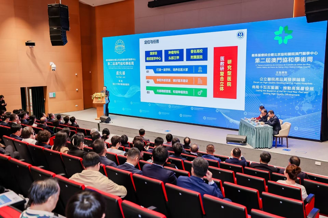 他在致辭中表示,自成立以來,協和澳門醫學中心緊密配合特區政府“預防為先,妥善醫療”的施政宗旨, 以優先提供公共醫療服務為原則,積極發揮北京協和醫院豐富的臨床經驗、管理體系及人才優勢,在兩地醫療合作、減輕公營醫療壓力、疑難重症診療、醫學人才培育等多方面,取得了顯著的階段性成就。第二屆學術周將傳承協和傳統,以不同主題為核心,舉辦主旨報告及圍繞多個醫學界關注的議題開辦10場分論壇。他期望,來自國內外的百多名專家及與會人員,可為澳門醫療界乃至粵港澳大灣區帶來富有啟發性與創新性的醫學視角。