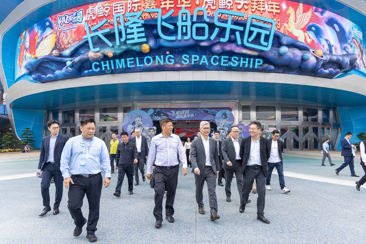 戴建業隨後轉往橫琴長隆國際海洋度假區,登上橫琴灣酒店21樓俯瞰度假區全貌,了解度假區整體規劃建設;又走進長隆飛船樂園項目,實地了解度假區在新春期間的客流量及經營情況,並與長隆集團代表圍繞度假區未來發展規劃等方面交流意見。