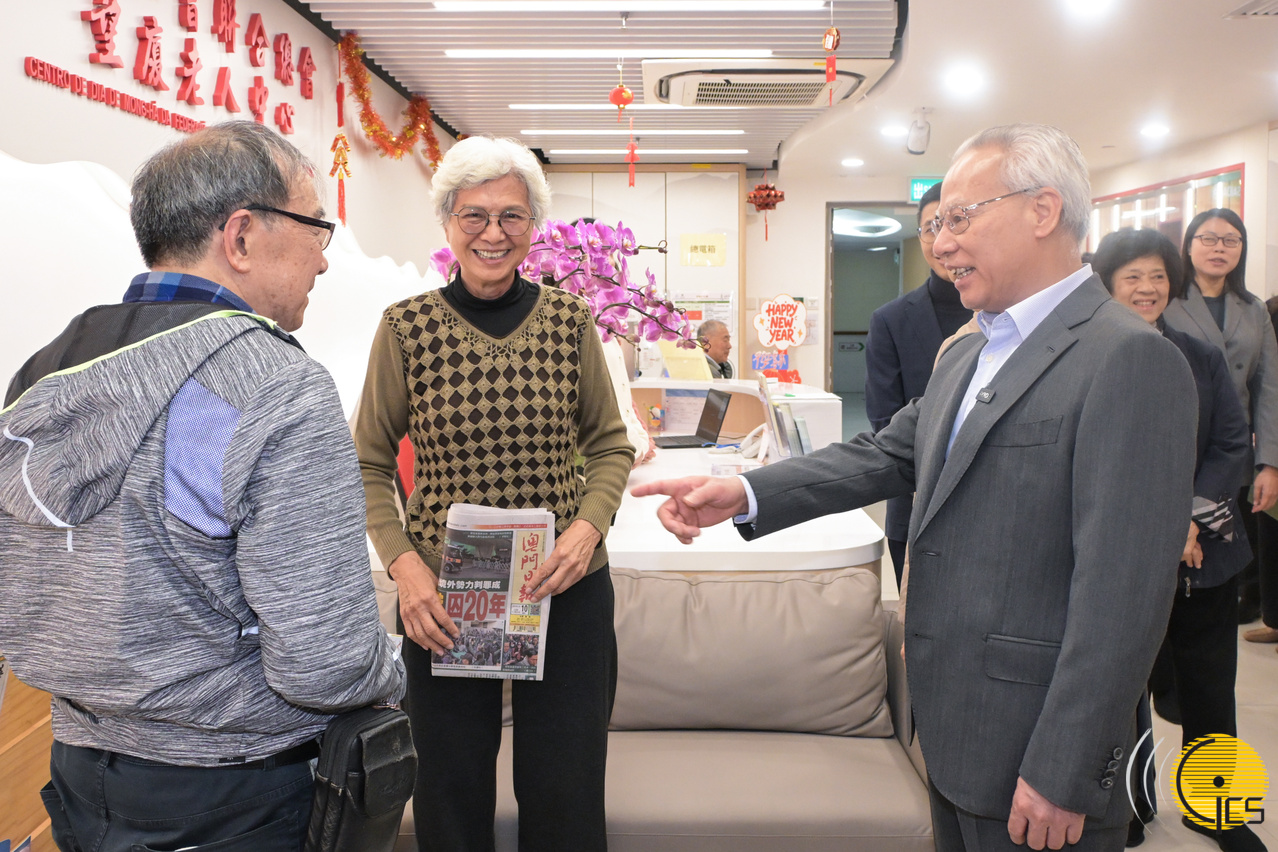 行政長官岑浩輝今(10)日早上探訪位於望廈社屋的托兒所、家庭服務中心、康復綜合服務中心及長者日間中心,瞭解相關社服設施開展服務的情況,並提前送上農曆新年的祝福。岑浩輝強調,特區政府將秉持“資源下沉”的原則,不斷改善和優化民生,包括積極支持民間機構提供更優質的社會服務,有效回應居民訴求。