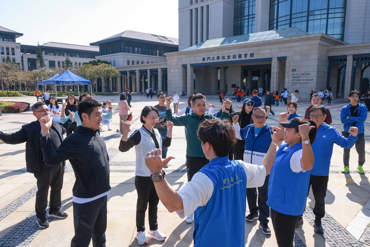 宋永華校長則強調,運動不只是為了減重,更是預防疾病、釋放壓力、增進人際關係、重建生活節奏以及提升生活質素的重要途徑。澳門大學以實際行動喚起居民對健康生活的重視,以大學為平台,與社會各界一起,推動健康事業發展,把健康理念帶入生活,把運動融入日常,讓健康成為共同目標。隨後,一眾嘉賓及參與者於澳門大學校園內步行了約2.5公里路段,除集體健步活動外,現場亦設有多個健康推廣攤位遊戲,內容涵蓋均衡飲食、戒煙限酒、急救知識及科學運動等健康資訊。參加者普遍表示活動形式輕鬆有趣,同時具教育意義,有助提升健康意識。