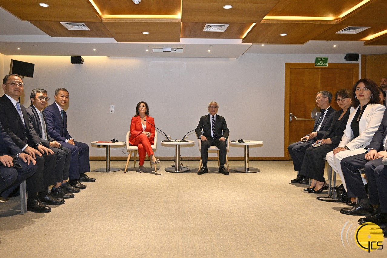 行政長官岑浩輝於當地時間22日下午,帶同隨團的20多名企業家代表,與西班牙參議院第二副參議長孔查?安德雷烏?羅德里格斯(Concha Andreu Rodríguez)會面,雙方就加強經貿往來、旅遊合作等議題交流意見。